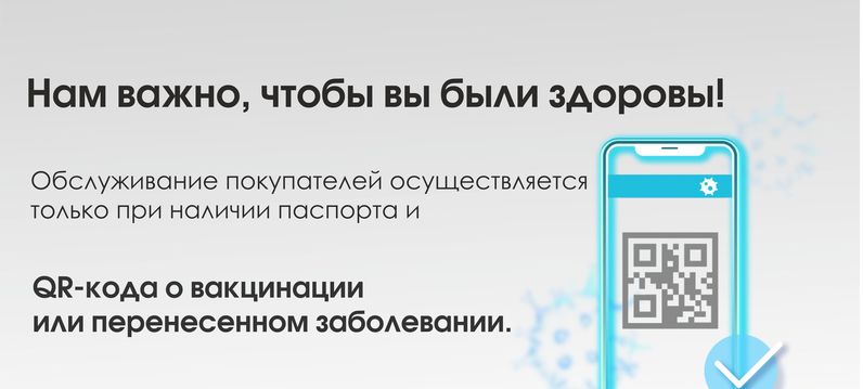 Начиная с 30 октября 2021 во исполнение Указа Губернатора Свердловской области от 27.10.2021 № 616-УГ, доступ посетителей в магазины 100 Диванов будет производиться только при наличии QR-кода или соответствующих медицинских документов с обязательным представлением документа, удостоверяющего личность посетителя.