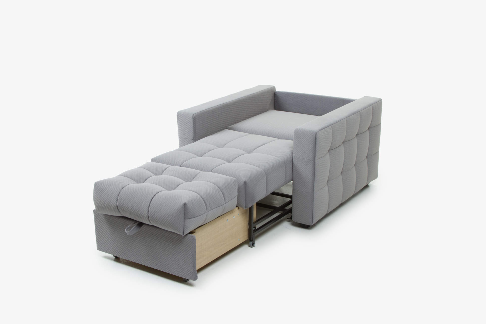 Выкатной механизм легко превращает кресло в удобное спальное место с ортопедическим основанием.