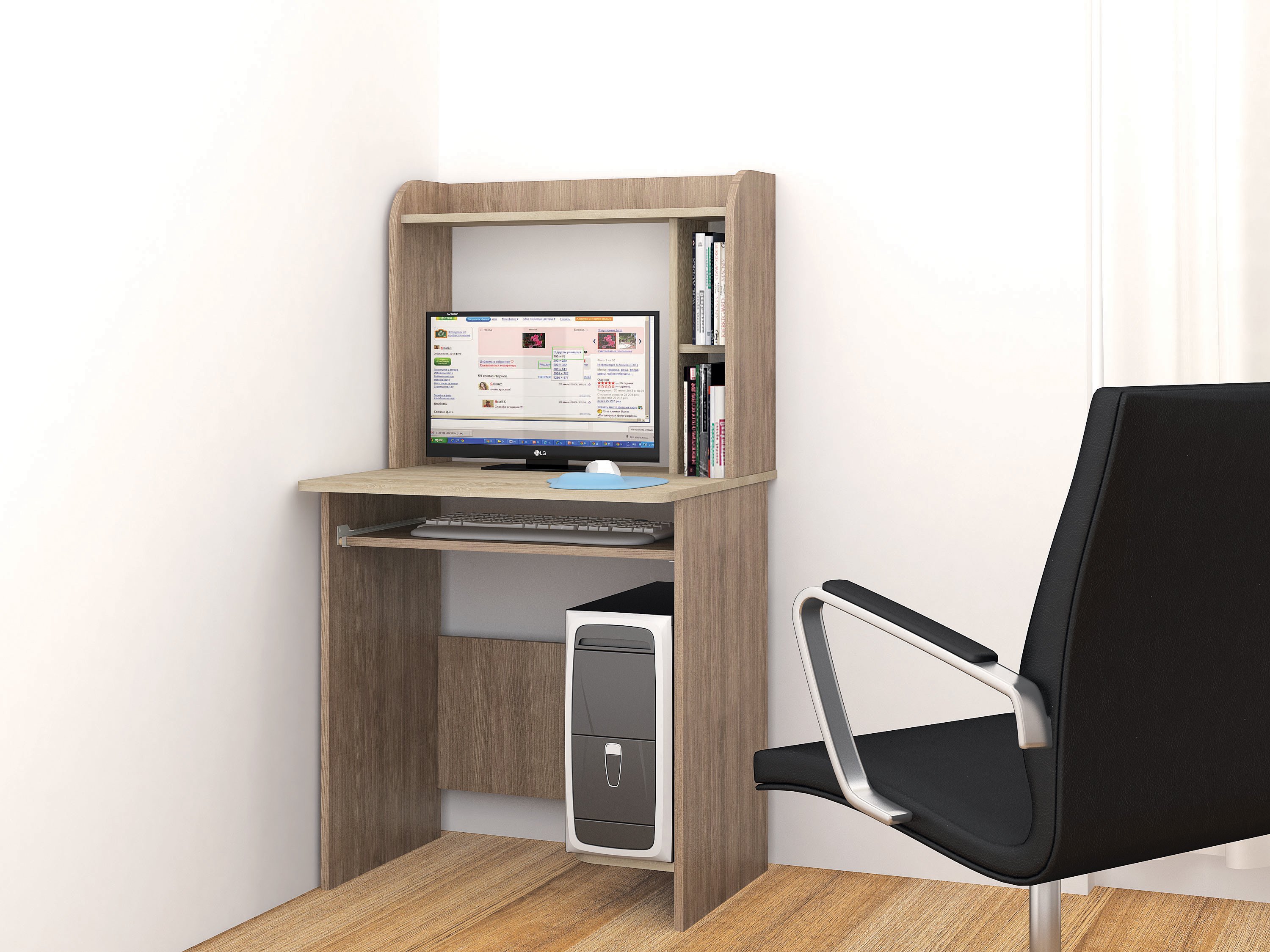 Компактный и функциональный компьютерный стол идеально подойдет для обустройства рабочей зоны дома или в небольшом офисе. Модель имеет выдвижную полку для клавиатуры, полку для системного блока и надставку с секциями для хранения.