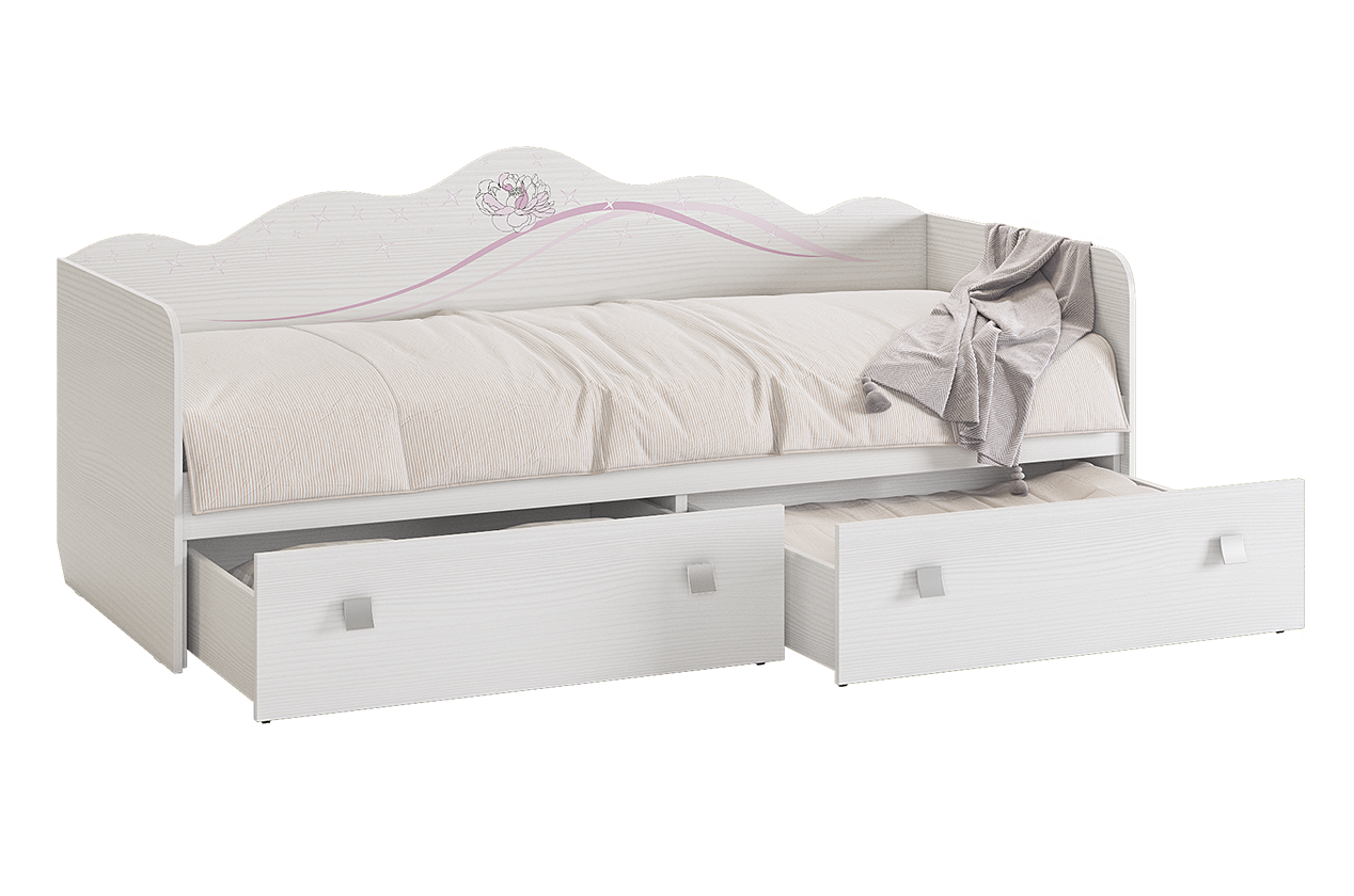Кровать Фэнтези поражает своей красотой и функциональностью. Изысканный рисунок на спинке придает особый шарм, создавая атмосферу сказки. Для комфортного и безопасного сна ребенка предусмотрены высокие боковины и спинка. Плюс, два просторных выдвижных ящика предоставляют удобное место для хранения постельного белья. Долговечность рисунка гарантирована благодаря устойчивости к износу и ультрафиолетовому излучению.