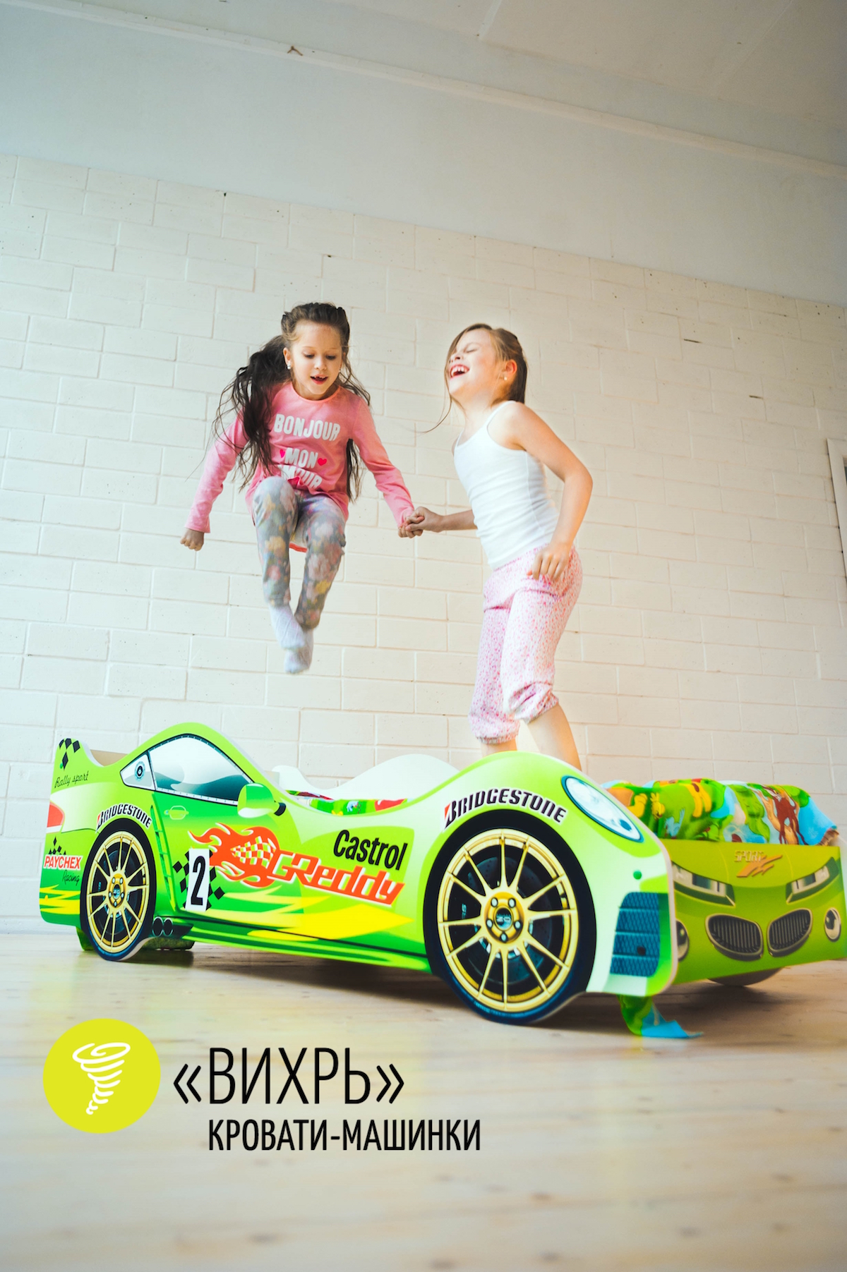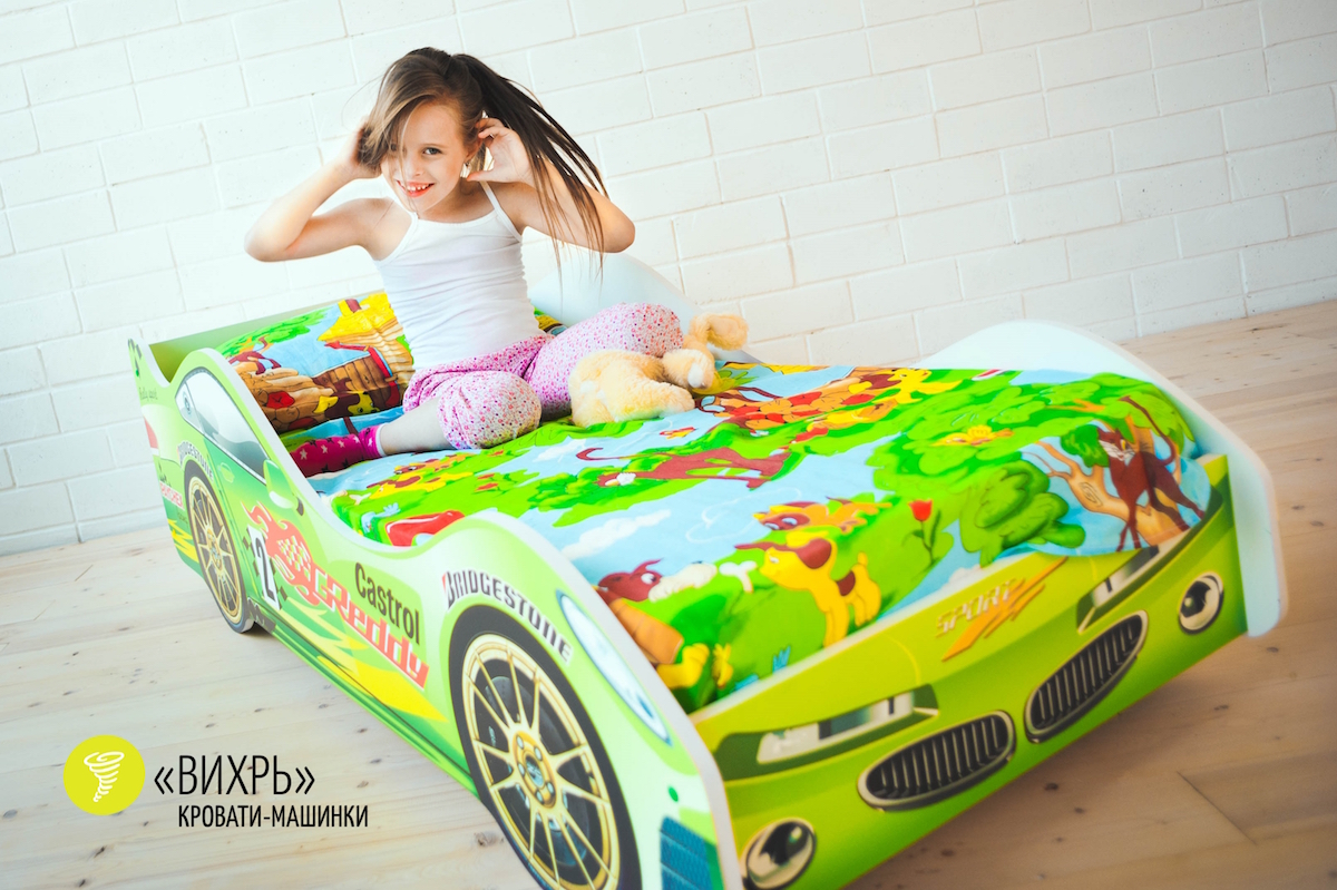 Давно пора уснуть, а ребенок не хочет ложиться в кроватку? Замените обычную и скучную конструкцию на кровать-машинку Вихрь, на которой будет не только очень удобно спать ночью, но играть днем с друзьями. Активные игры с кувырками и прыжками только приветствуются, так как изделие выдержит любую нагрузку до 200 кг. Кроме того, отсутствие острых углов и кромок исключают возможность пораниться, а предохранительные бортики защитят от случайного падения. Используемые нами материалы соответствуют экологическим стандартам качества и разрешены в производстве детской мебели.