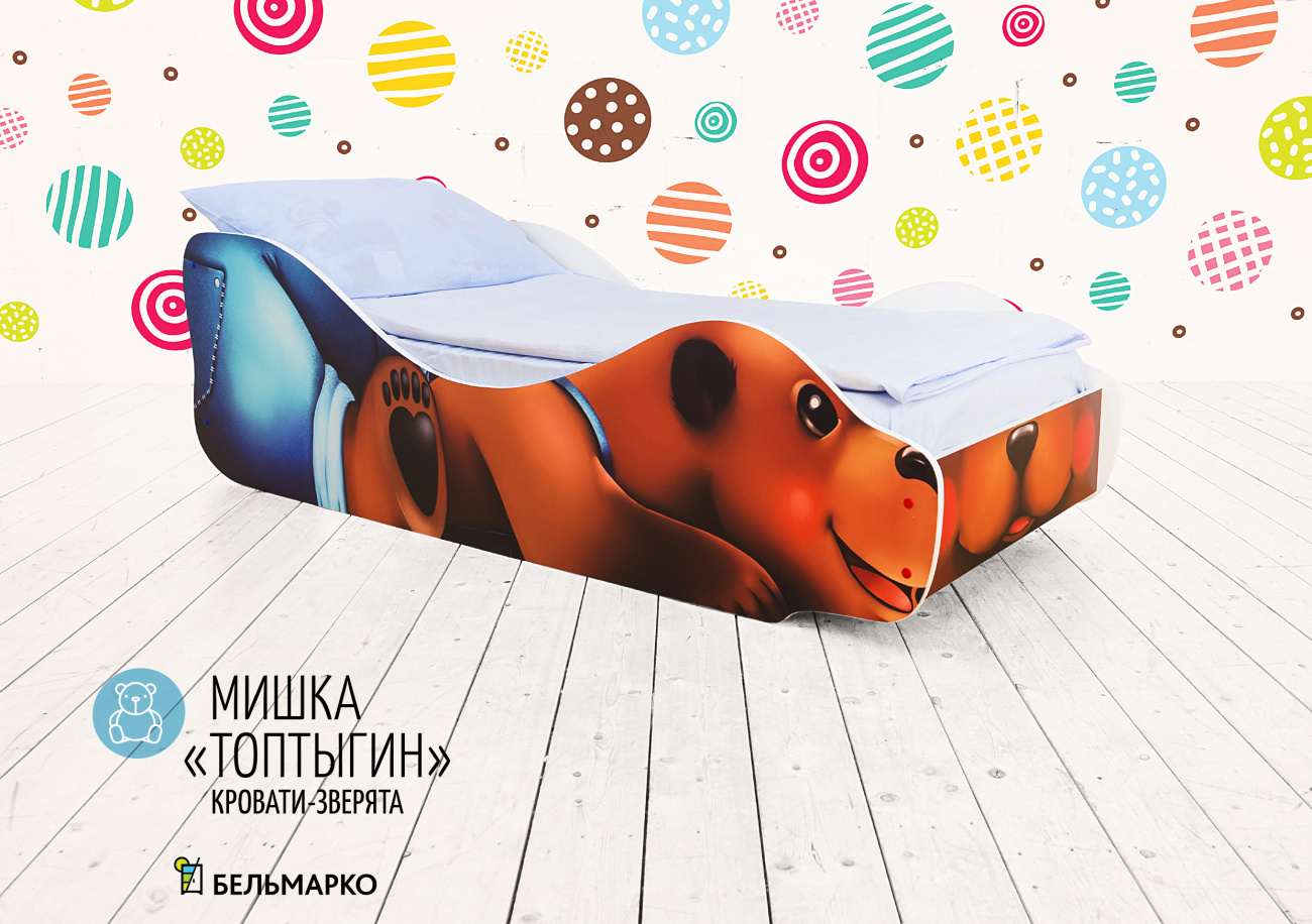 У каждого малыша должен быть свой мишка. Можно купить обычную игрушку, а можно приобрести кроватку МИШКА-ТОПТЫГИН – это и игрушка, и удобное место для сна. Соберите ее вместе с ребенком, он с удовольствием примет участие в этом увлекательном для него процессе. Все необходимое для монтажа входит в комплект, в том числе подробная инструкция. Для того, чтобы произвести сборку, требуется к основанию из деревянных лат присоединить ламинированные борта из ЛДСП, на которые нанесен образ симпатичного медвежонка. Способ, при помощи которого было сделано изображение, является одним из самых экологичных. Используемые для этого УФ-краски абсолютно безвредны. Рисунок останется красочным и четким в течение всего срока службы изделия.
