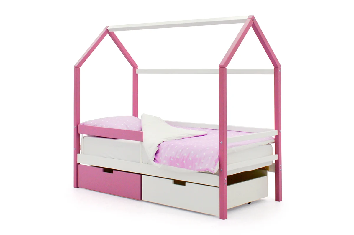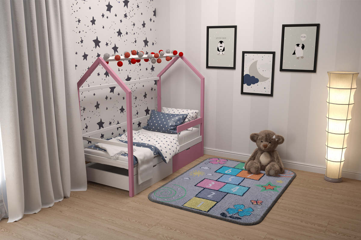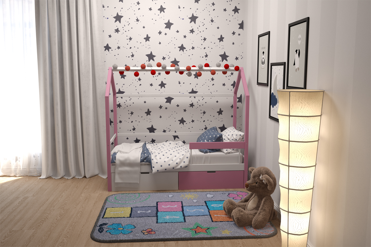 Кровать-домик легко превращается в целый замок для игр с помощью разноцветных тематических игровых накидок. Текстильная крыша на домике создаст ребенку уют и защищенное пространство.
