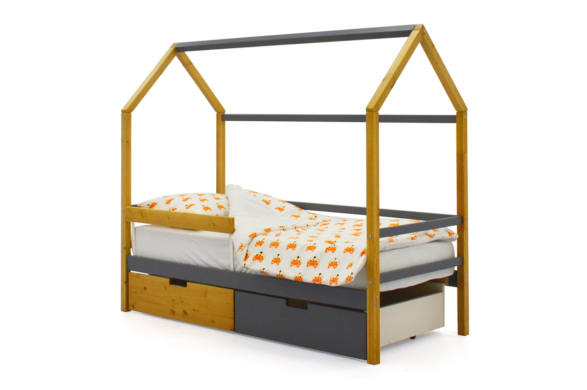 Кровать-домик легко превращается в целый замок для игр с помощью разноцветных тематических игровых накидок. Текстильная крыша на домике создаст ребенку уют и защищенное пространство.