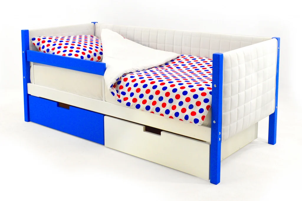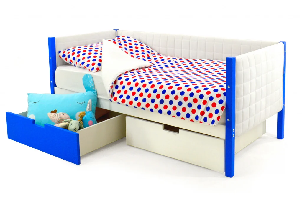 Детская мягкая кровать-тахта Бельмарко “Svogen сине-белый” станет любимым местом для сна и игр мальчика или девочки от 2 до 10-12 лет.