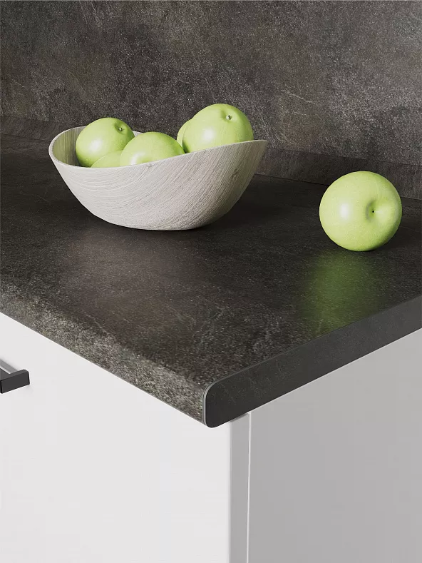 Столешницы цельные с пластиковым покрытием со скруглением по переднему краю (постформинг толщина 26 мм).