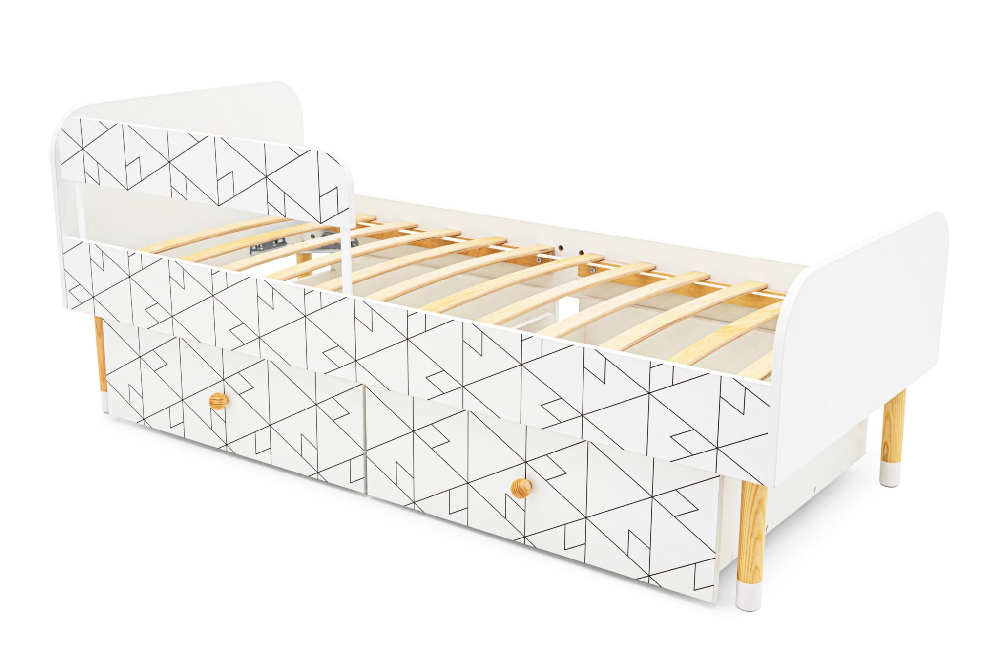 Комплект кровати состоит из каркаса кровати и ортопедического основания. Бортик, ящики, матрас и постельные принадлежности приобретаются отдельно.