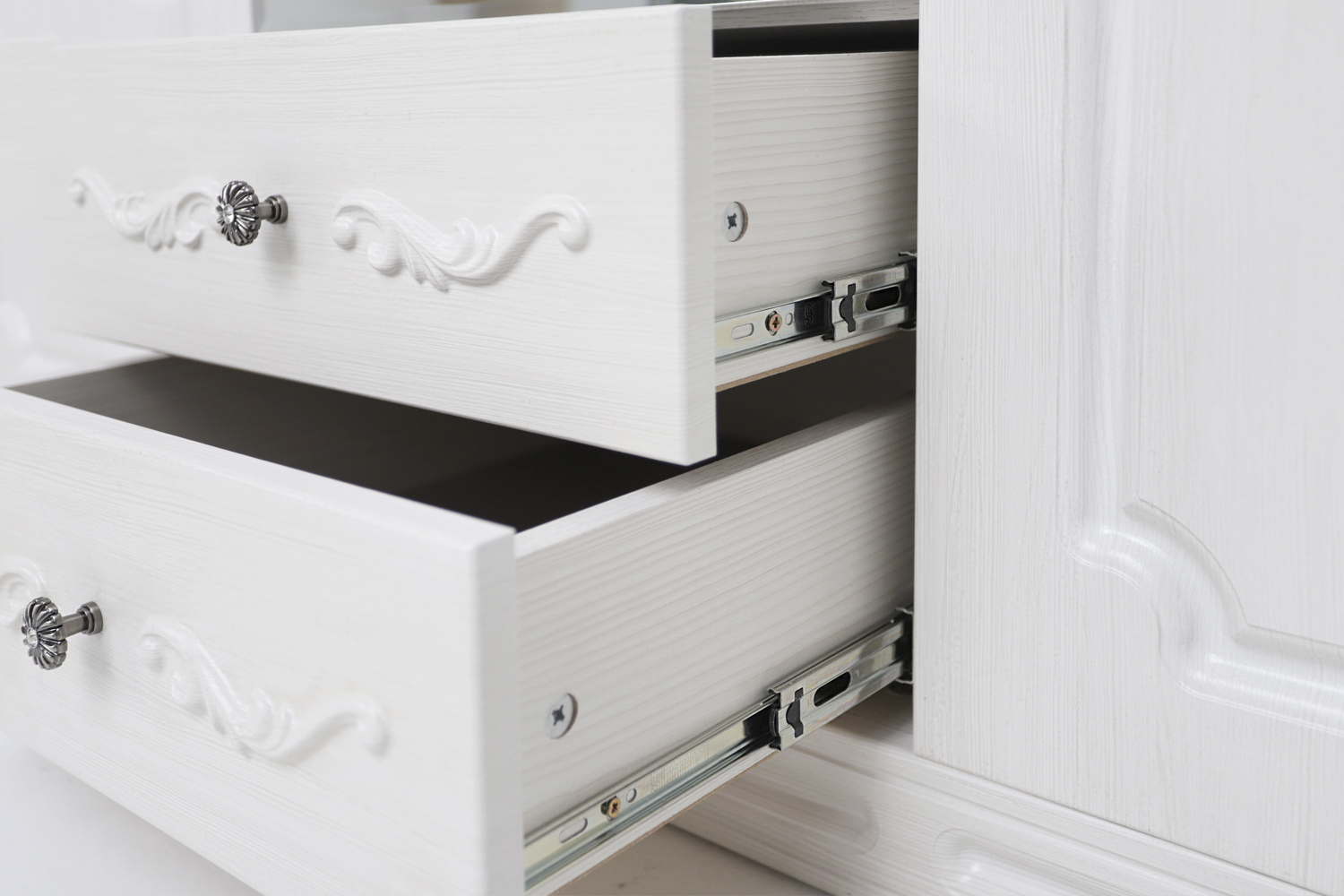 Шкаф будет хорошо гармонировать с кроватью, комодом и тумбой серии «Мария-Луиза» и удачно завершит образ спального гарнитура.