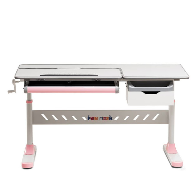 Столешница имеет две зоны, наклоненную и статичную. Благодаря возможности наклона столешницы от 0° до 50° парта Fiore идеально подходит для любого вида обучения (письмо, чтение, рисование...). Также стоит отметить отметить важность статичной части столешницы, на которой можно разместить лампу и ноутбук для удаленного обучения.