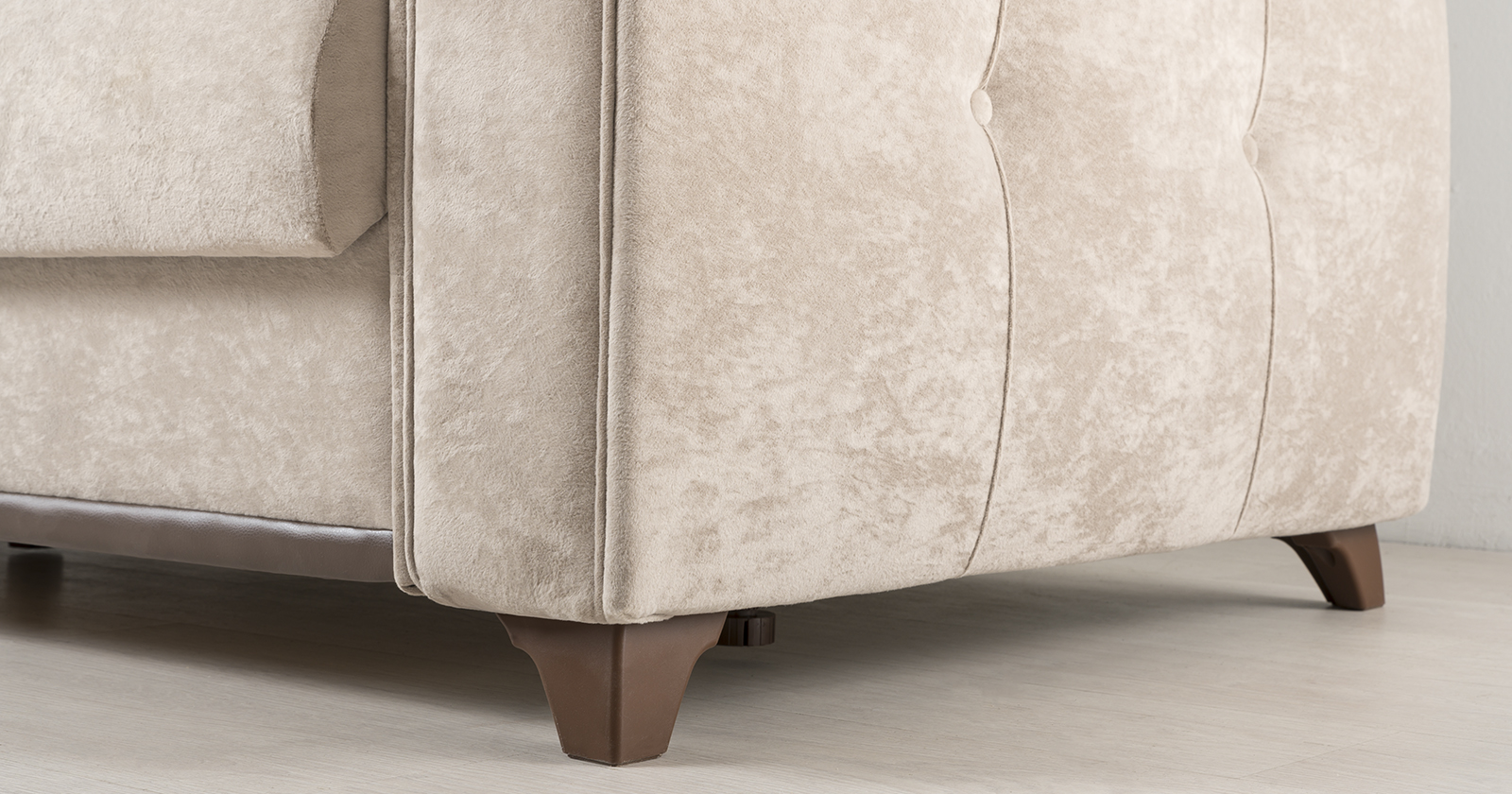 Выполнен в модном мягком велюре ROMANCE оригинальной фактуры. Ткань легко чистится, устойчива к зацепам, обладает повышенной износостойкостью. Благодаря особой технологии гладкого крашения Frozen Flower на поверхности ткани присутствует легкий краш–эффект, подчеркивающий невероятно мягкую фактуру ткани.