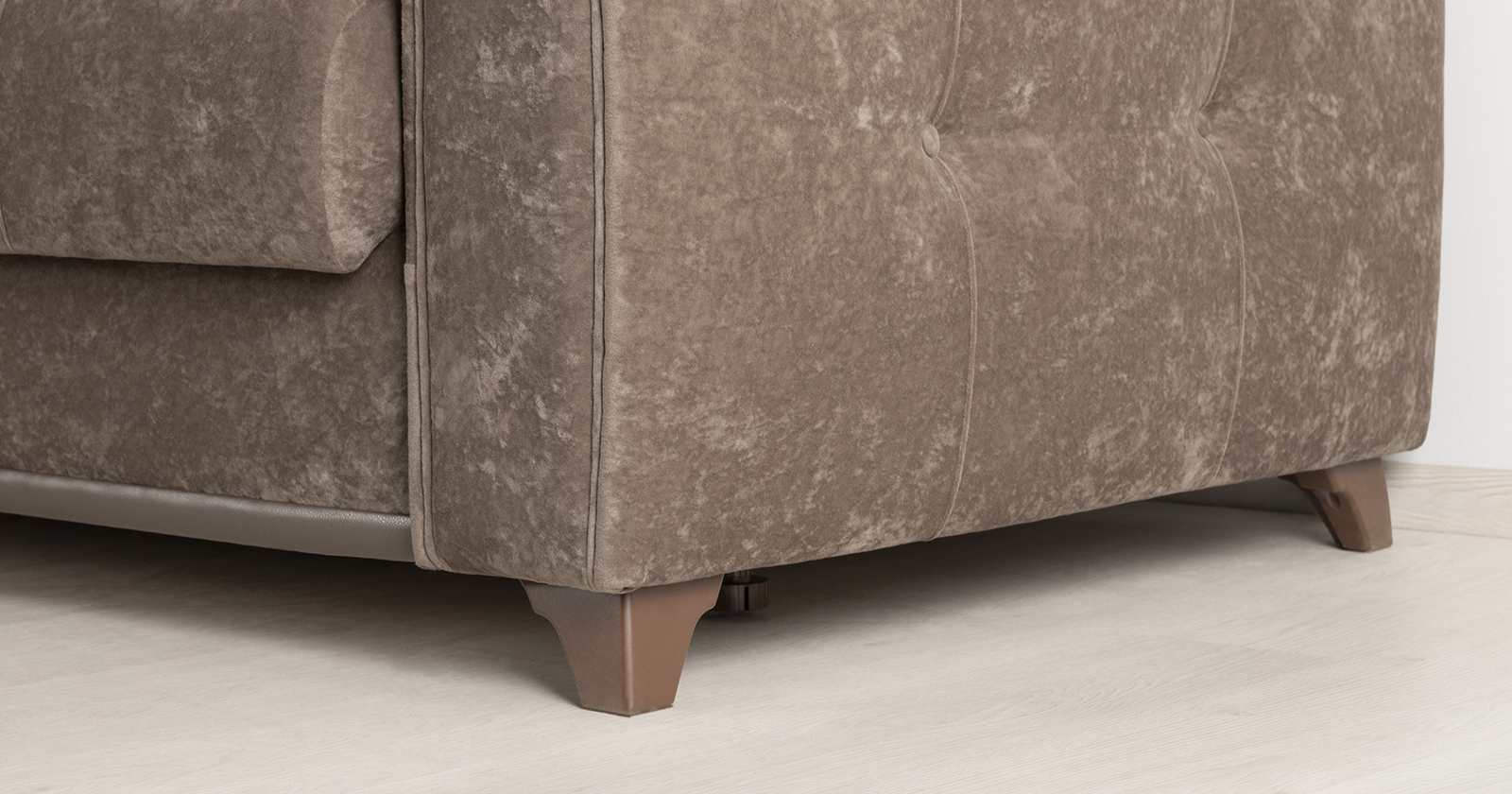 Выполнен в модном мягком велюре ROMANCE оригинальной фактуры. Ткань легко чистится, устойчива к зацепам, обладает повышенной износостойкостью. Благодаря особой технологии гладкого крашения Frozen Flower на поверхности ткани присутствует легкий краш–эффект, подчеркивающий невероятно мягкую фактуру ткани.