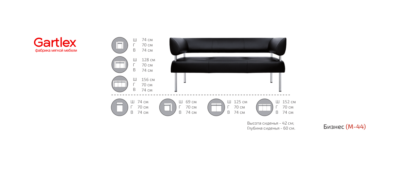 Высота сиденья - 42 см; Глубина сиденья - 60 см