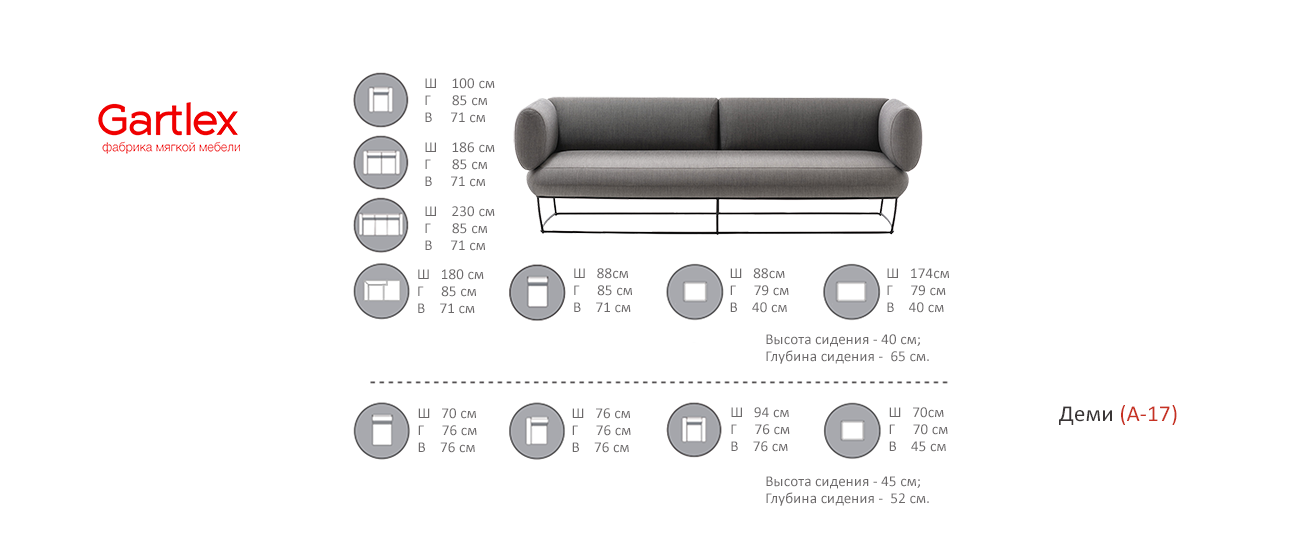 Коллекция Деми состоит из различных модульных элементов мягкой мебели, что позволяет организовать уютный уголок ожидания в помещении любого размера.