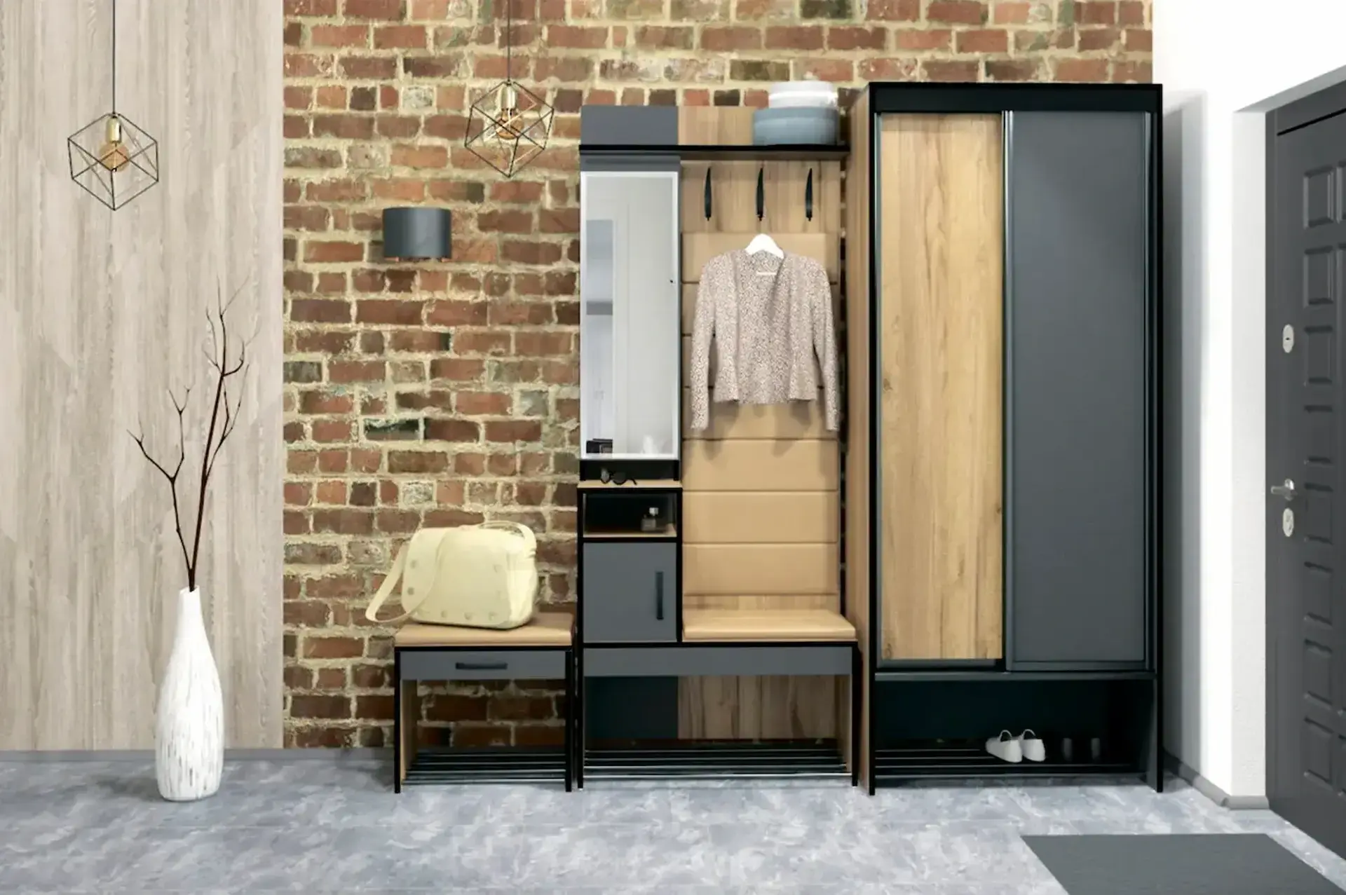 Функциональная прихожая «Ольга Лофт» возможна сборка как в правом, так и в левом исполнении.