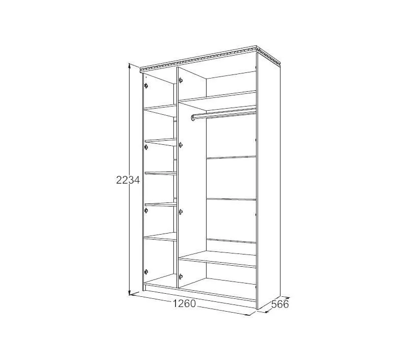 Размер: (Ш*В*Г) 1260*2234*566 мм.
