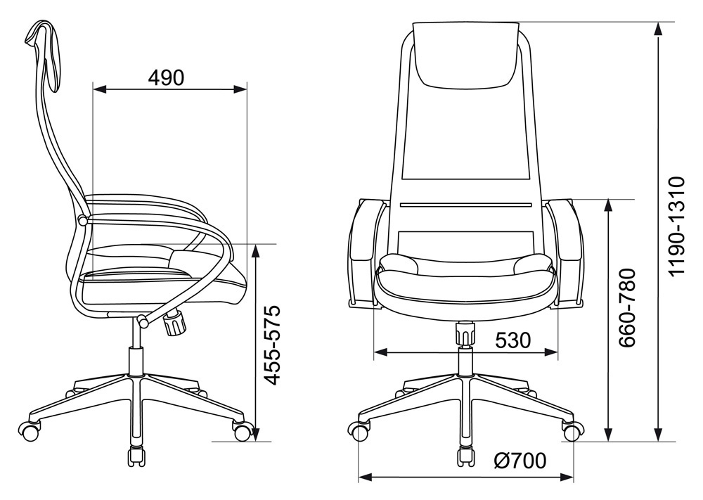 Подлокотники металлические крашеные, цвет черный с накладками из искусственной кожи.