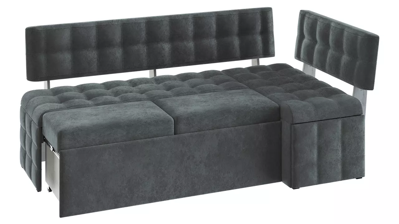 Функциональность. Новинка является многофункциональным предметом мебели, ведь в обычном виде скамья угловая поможет удобно разместиться за обеденным столом, а механизм трансформации превращает его в полноценное спальное место для гостей, оставшихся ночевать. Для раскладывания необходимо выложить подушки, которые входят в комплект, на выдвигаемую часть скамьи. Модель позволит Вам отказаться от большого количества подвесных полок и дополнительных модулей за счет того, что в ней имеются вместительные ниши для хранения под сиденьями.