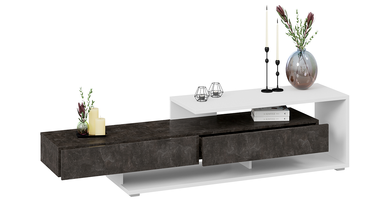 Помимо привлекательного внешнего вида, который способен вписаться в любой интерьер, тумба под ТВ «Монтана» дополнена вместительными выдвижными ящиками на шариковых направляющих, открывание с помощью захвата рукой снизу. Кроме закрытых мест для хранения, тумба имеет вместительную открытую нишу, на которой можно разместить всю необходимую медийную технику, а также предметы декора.