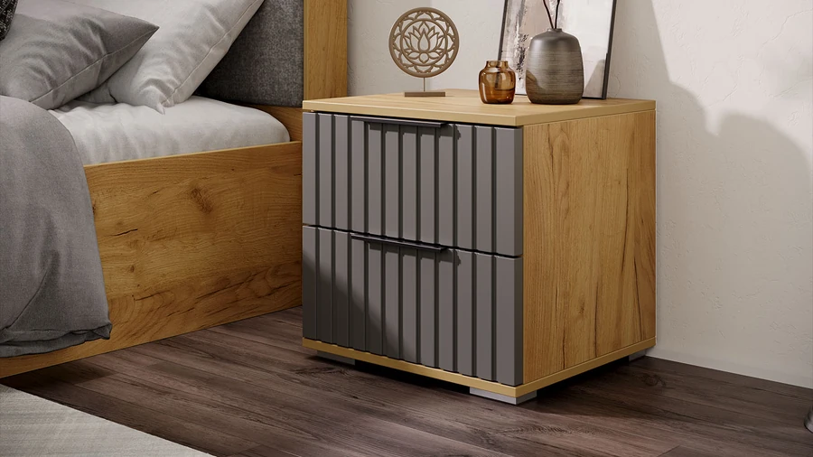 Тумба прикроватная Хилтон дуб крафт золотой/графит софт