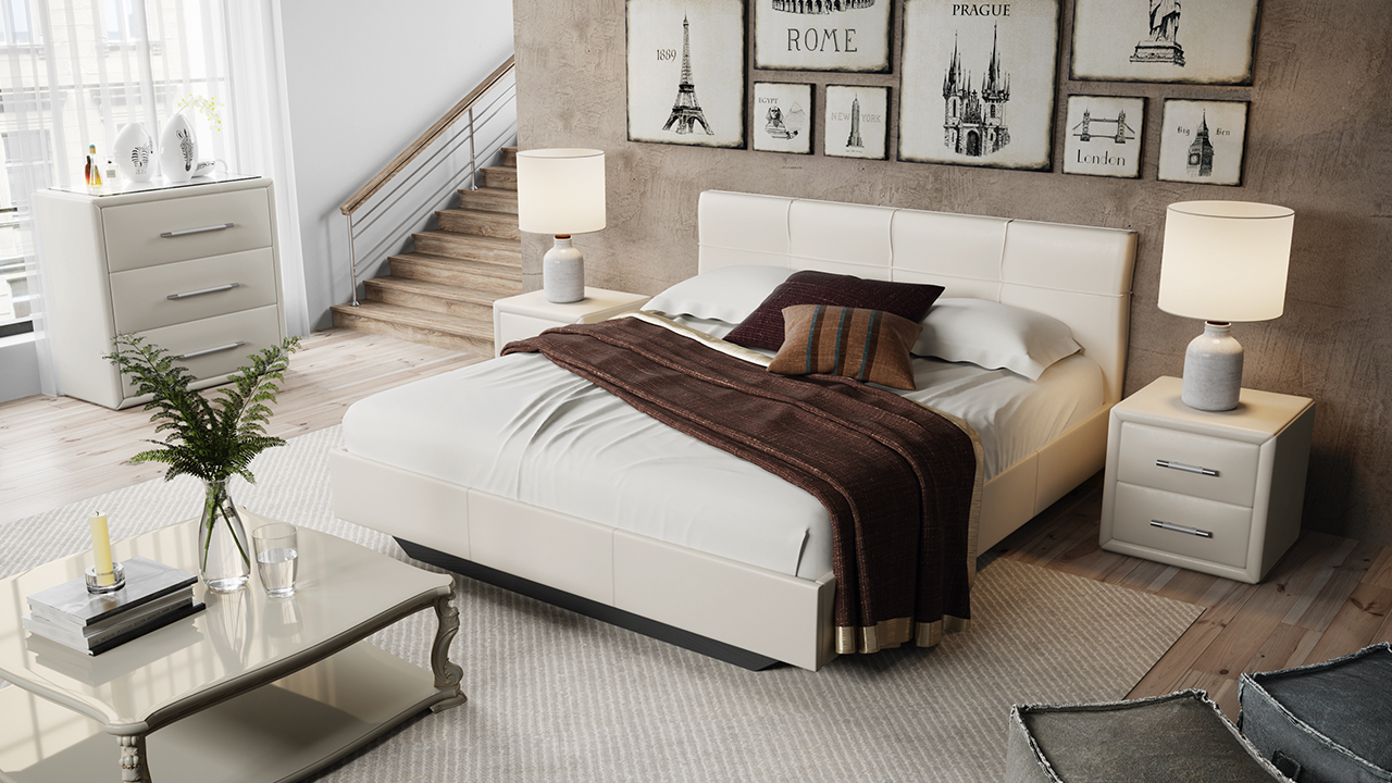 Обивка у расцветок: Белая, светлая, темная - экокожа.