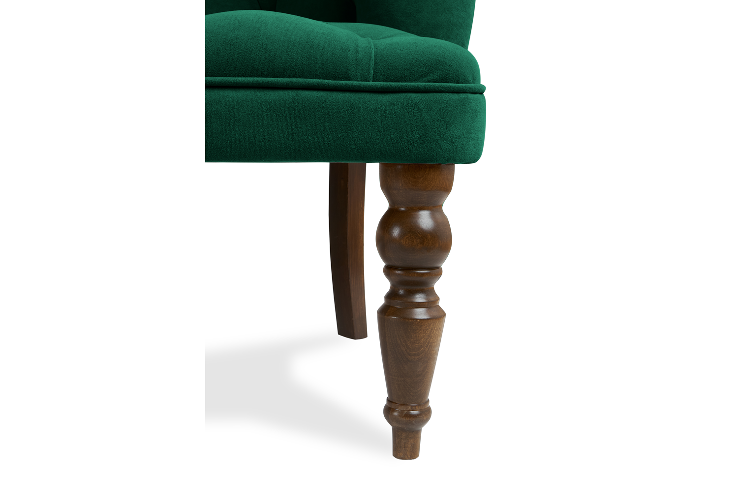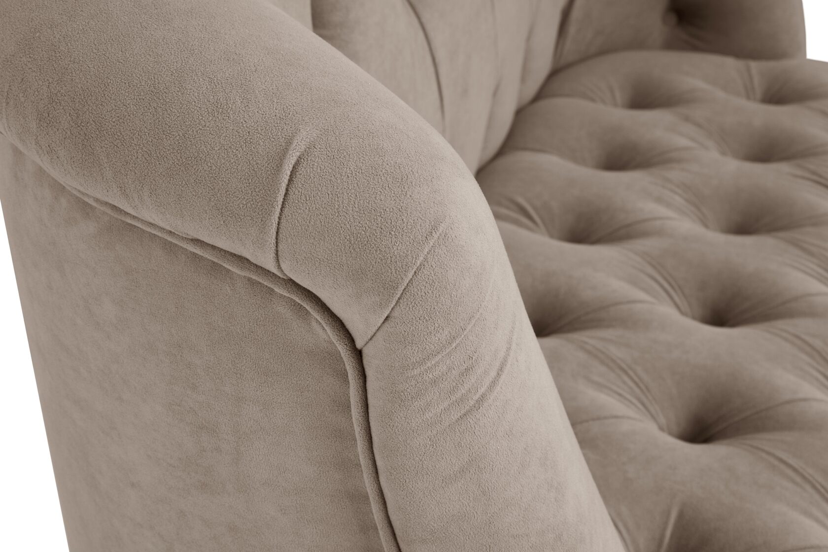 Двухместный прямой диван с изящным изголовьем и резными ножками из натурального дерева никого не оставит равнодушным.