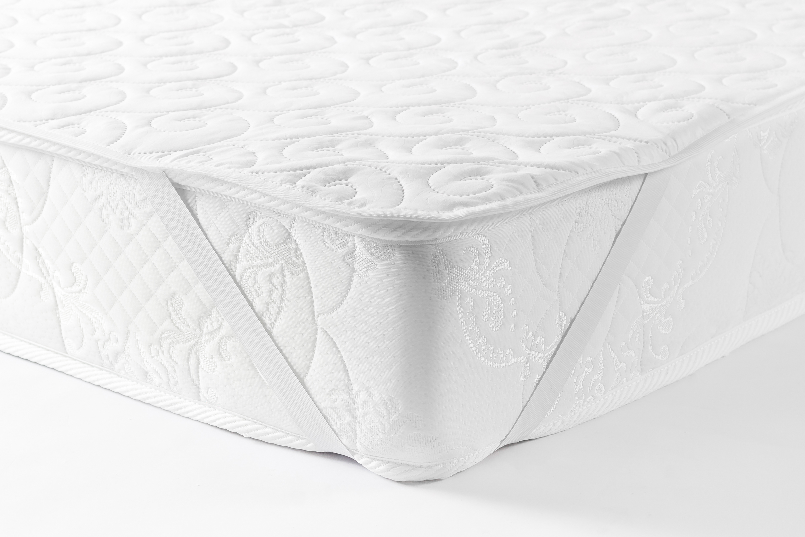 Стеганный чехол из 100% хлопка на резинках защищает матрас от пыли и загрязнений. Удобные резинки на углах чехла позволяют быстро и надежно зафиксировать изделие на матрасе.