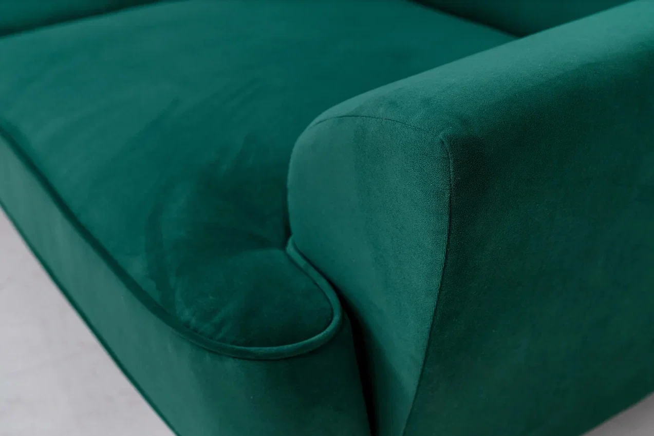 Без подменной ткани, велюром покрыта задняя спинка, что позволит использовать диван для зонирования помещения.