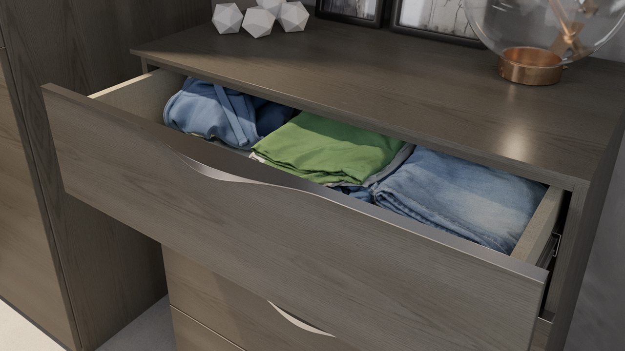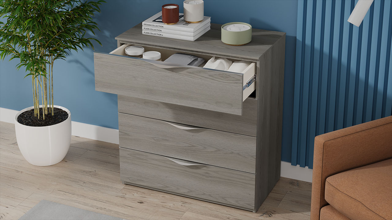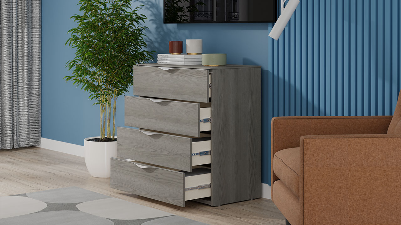 Комод из коллекции "Либерти" имеет 4 вместительных ящика с оригинальными металлическими ручками.