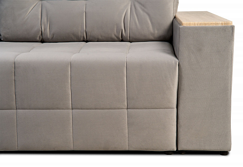 Огромным преимуществом данной модели, является наличие выкатного столика в одном из подлокотников, оснащённый доводчиком на закрывание. Во-втором подлокотнике находится ламинированный ящик, куда по необходимости можно сложить вещи.