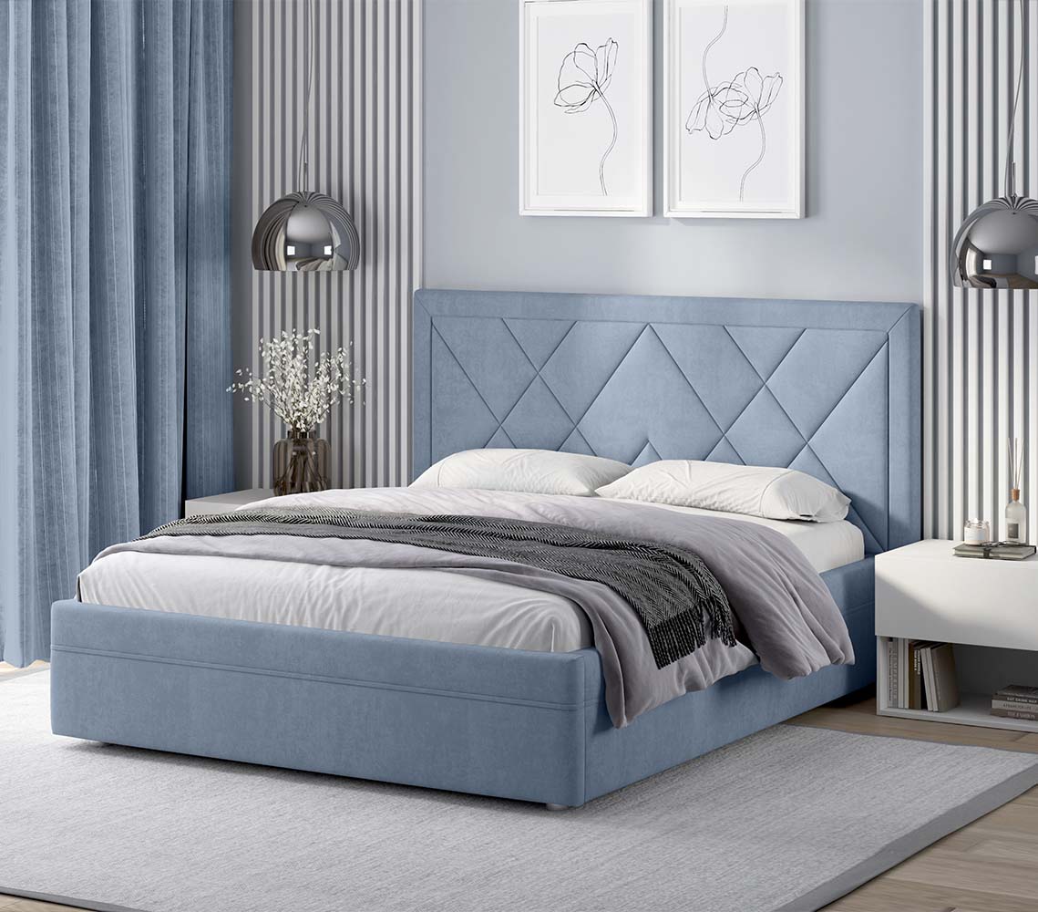 Эксклюзивная модель с мягким изголовьем, украшенным трендовым геометрическим дизайном. Такая модель на сегодняшний день пользуется большой популярностью у покупателей.