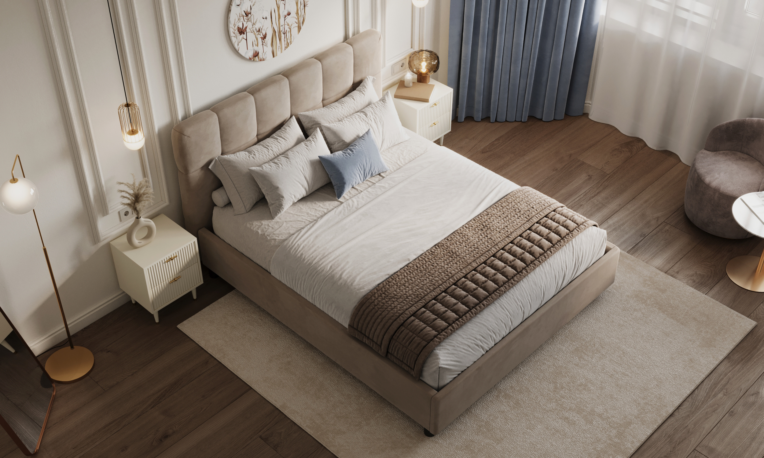 Современная кровать Голди в стиле минимализм с декоративной строчкой на изголовье может быть стилизована в скандинавский стиль спальни или современную классику благодаря лаконичному дизайну изголовья. Высокое изголовье кровати позволит Вам создать органичный комплект с высокими комфортными матрасами. Мягкие царги и углы у изножья уберегут от травм. Высота опор облегчает уборку: под кровать легко заезжает робот-пылесос. При необходимости можно укомплектовать кровать подъемным механизмом, который обеспечит лёгкий доступ к ящику для удобного хранения постельных принадлежностей и прочих вещей. Ортопедическое основание (входит в стоимость) – залог хорошего отдыха и здорового сна. Усиленный крепёж. Конструкция кровати очень прочная и надежная, благодаря использованию качественных материалов.