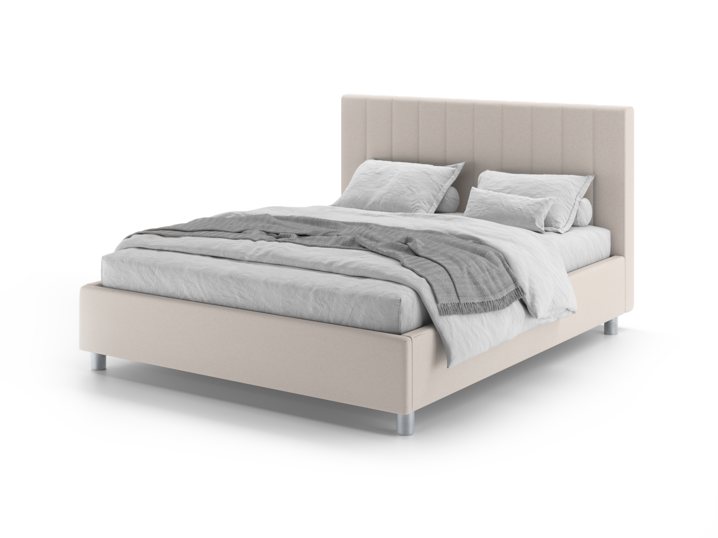 Стильная минималистичная кровать с декоративными строчками на изголовье. Простая геометрия в дизайне кровати не оставит равнодушными ценителей лаконичности и простых форм. Мягкие царги и углы у изножья уберегут от травм