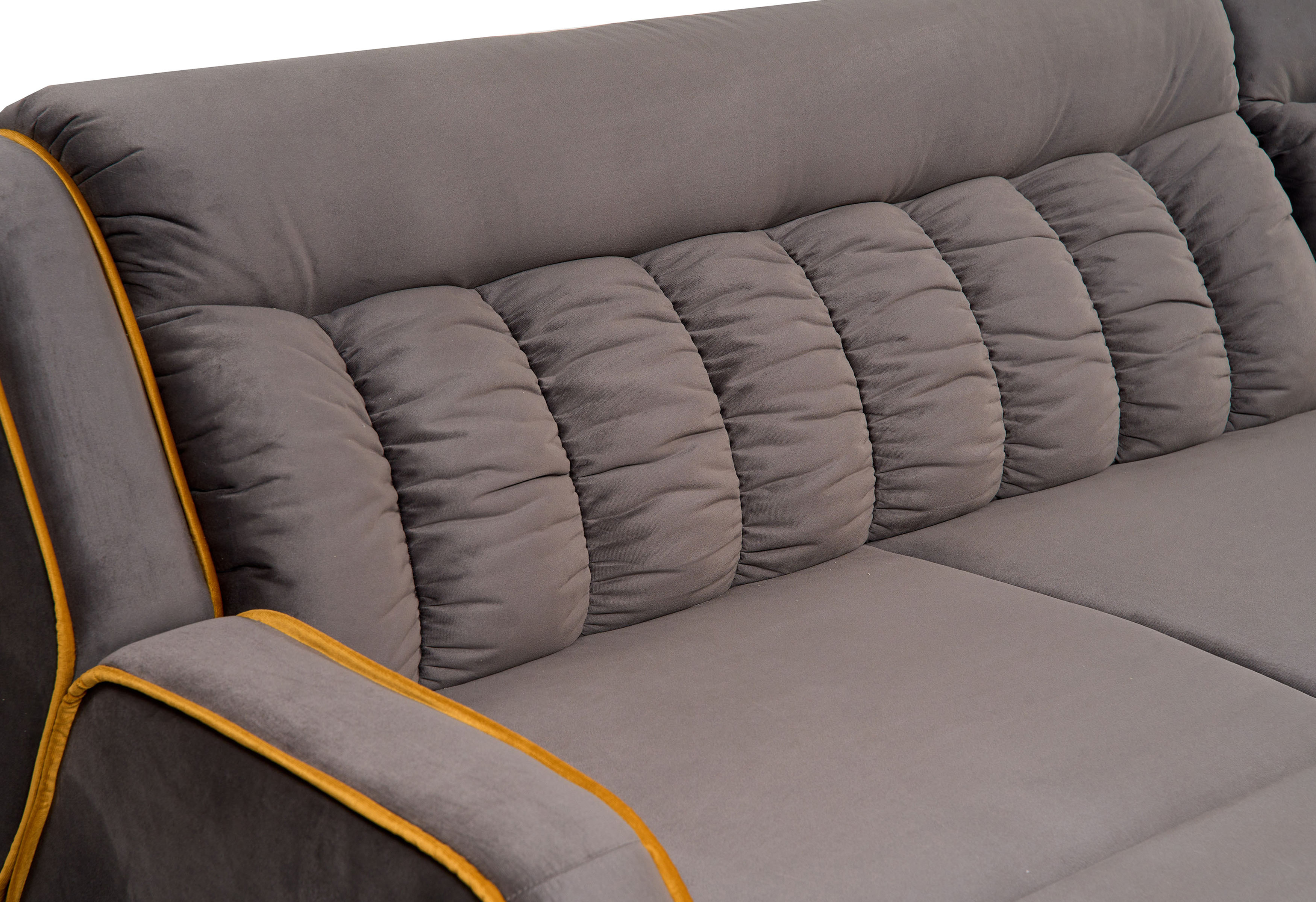 Угловой диван — наиболее приемлемый вариант как для маленькой, так и просторной комнаты. Он хоть и массивен, но при этом функционален. Такая форма может быть представлена в двух вариантах: левая и правая, стороны будут симметричны.
