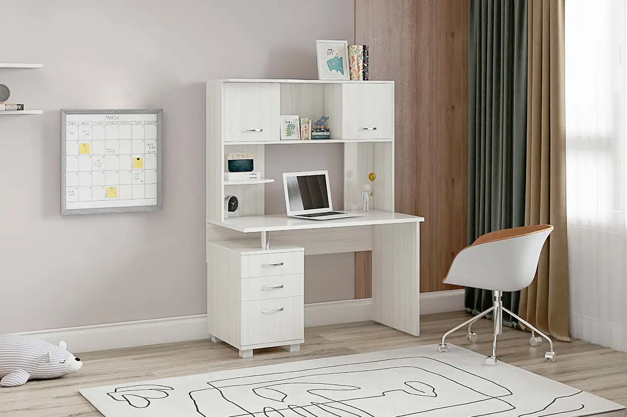 Стильный и практичный письменный стол с надстройкой и встроенной тумбой! Этот функциональный предмет мебели не только поможет вам организовать свое рабочее пространство, но и придаст вашему интерьеру изысканность и элегантность.
