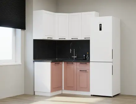 Аликанте 7: Цвет фасада: Шарли Pink, Шарли белый, корпус Серый, столешница 28мм: Каспий черное золото