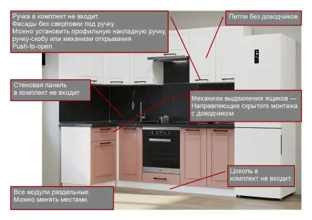 Аликанте 9: Цвет фасада: Шарли Pink, Шарли белый, корпус Серый, столешница 28мм: Каспий черное золото