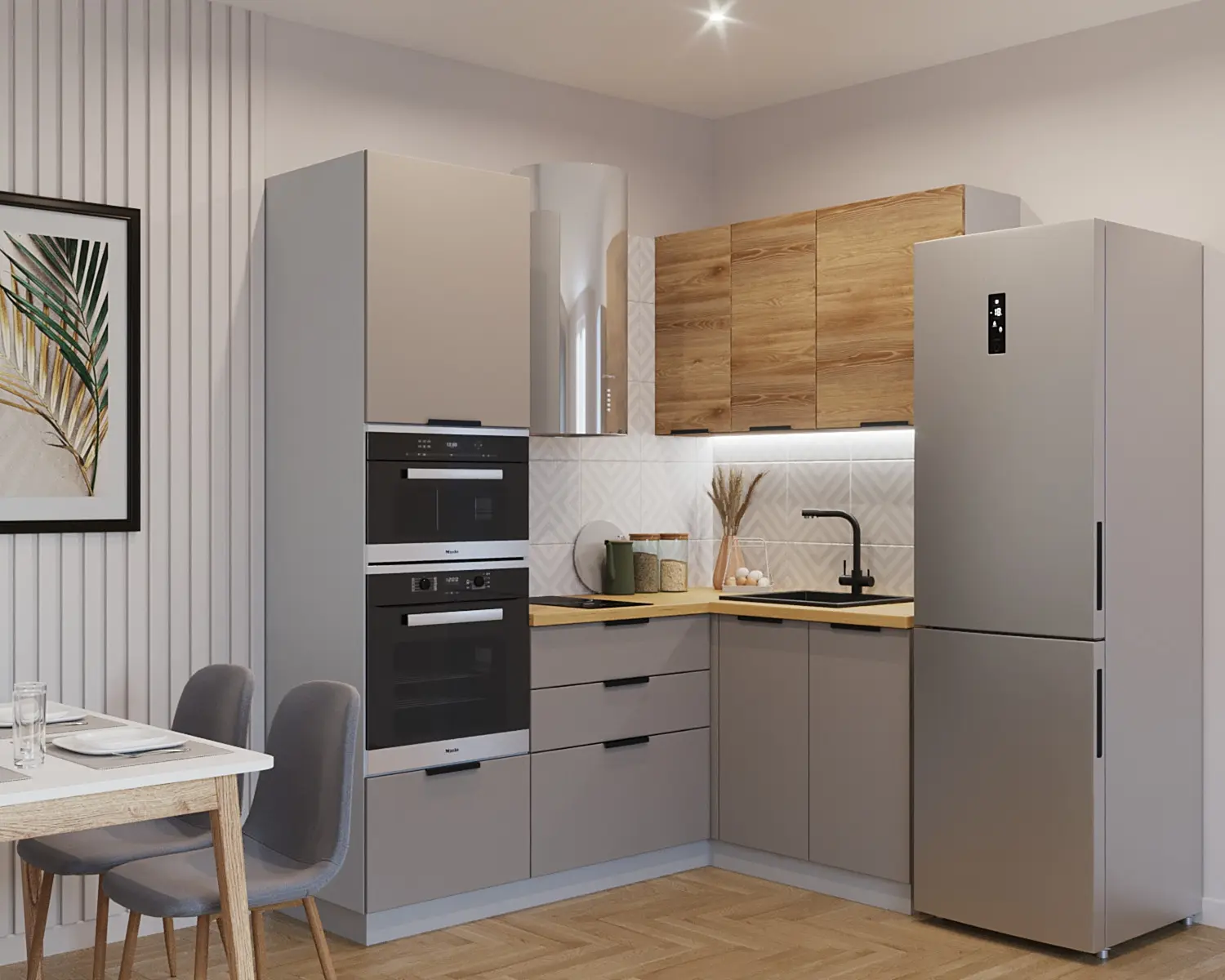 Магазин мебели «100Диванов» предлагает купить Кухонный гарнитур арт. 8 Обсидиан Рустик натур 2000х1400 в Пыть-яхе по выгодным ценам от производителя с доставкой.