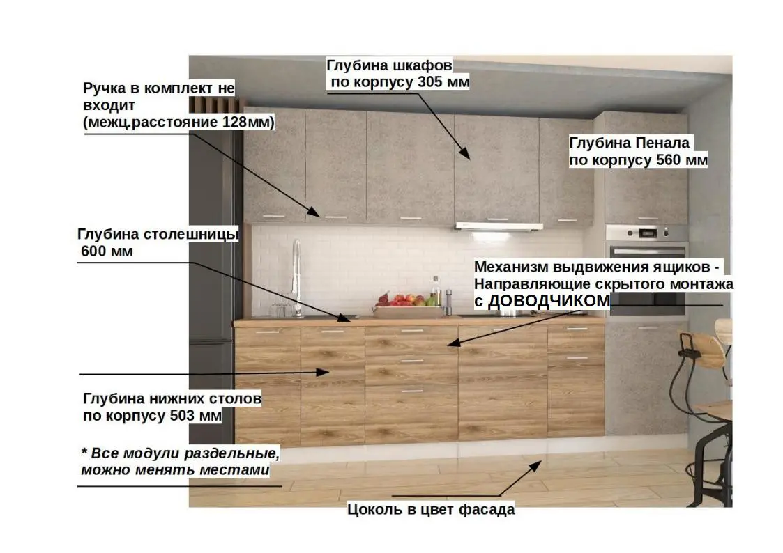 *Дополнительную информацию о том, как купить Кухонный гарнитур ЛОФТ-3 (3000 мм) уточняйте у нашего менеджера по телефону 8 (800) 500-54-49.