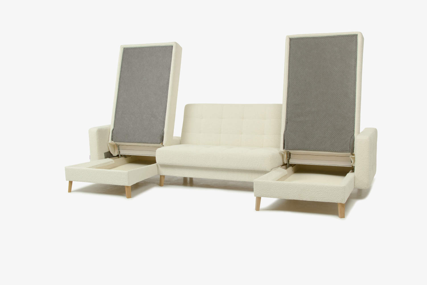 Под посадочным местом дивана расположено просторное место для хранения.