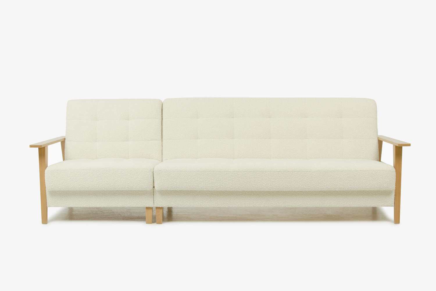 Диван «Скандинавия 3+1 Массив» - классический представитель скандинавского стиля. Его лаконичный дизайн с деревянными подлокотниками из бука, удобными валиками и прямоугольной стежкой удачно дополнит любой интерьер. На таком диване приятно принимать гостей, удобно сидеть и комфортно спать.