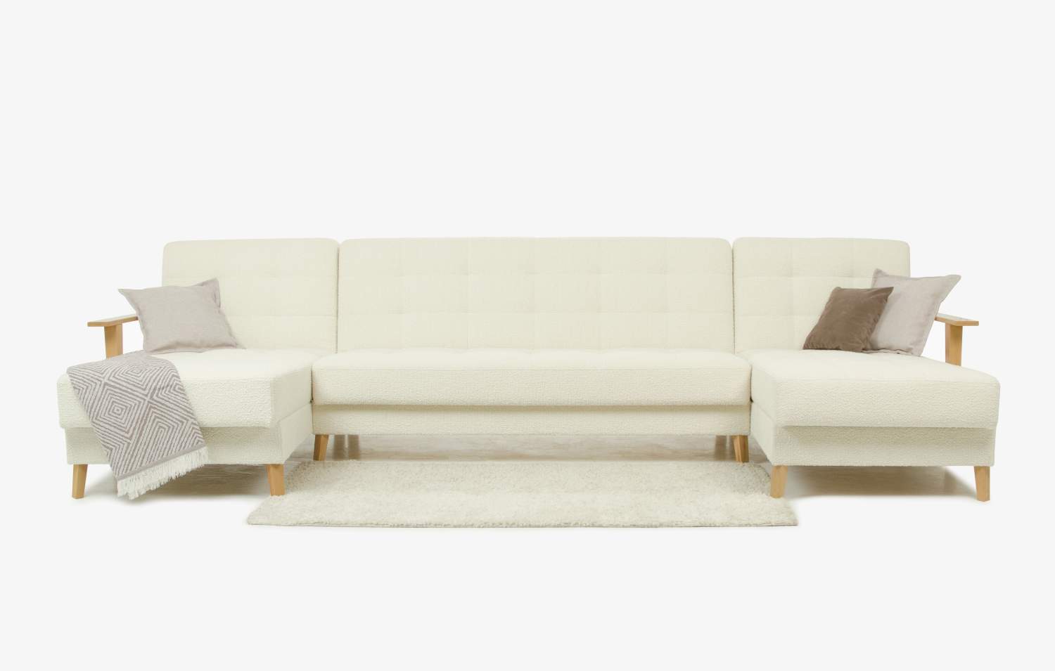 Диван «Скандинавия От+3+От Массив» - классический представитель скандинавского стиля. Его лаконичный дизайн с деревянными подлокотниками из бука, удобными валиками и прямоугольной стежкой удачно дополнит любой интерьер. На таком диване приятно принимать гостей, удобно сидеть и комфортно спать.