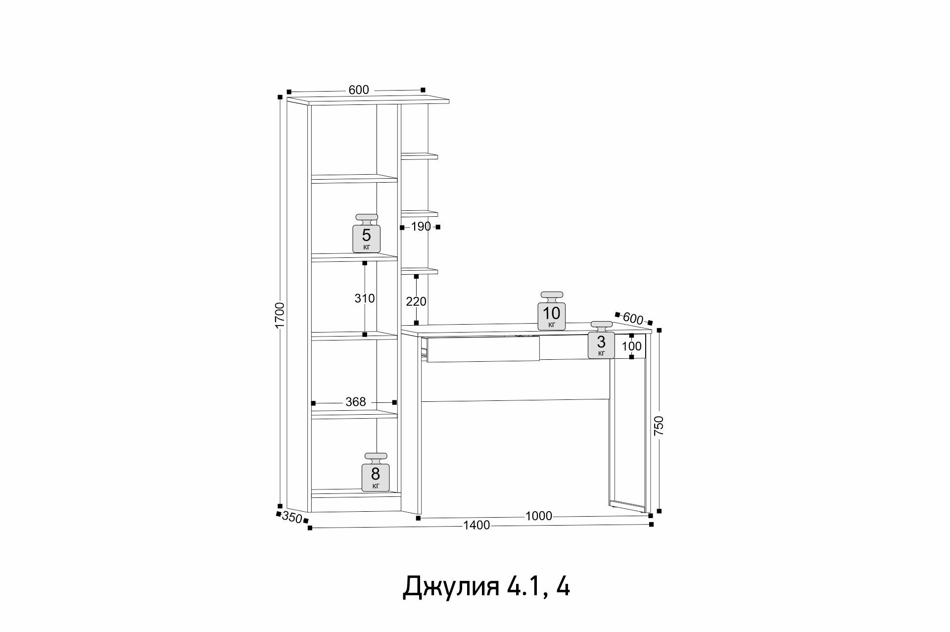 Магазин мебели «100Диванов» предлагает купить Пенал (надстройка) к столу письменному Джулия 4.1 в Пыть-яхе по выгодным ценам от производителя с доставкой.