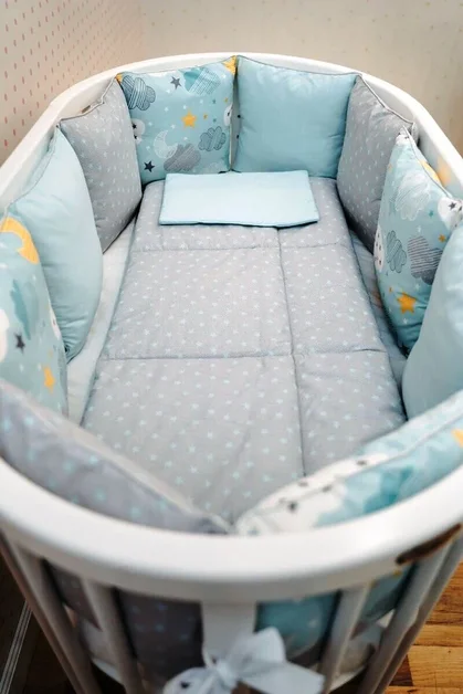 Милые, современные расцветки данного комплекта на пике популярности. Борты-подушки имеют сьемные чехлы на молнии, что особенно практично при эксплуатации.