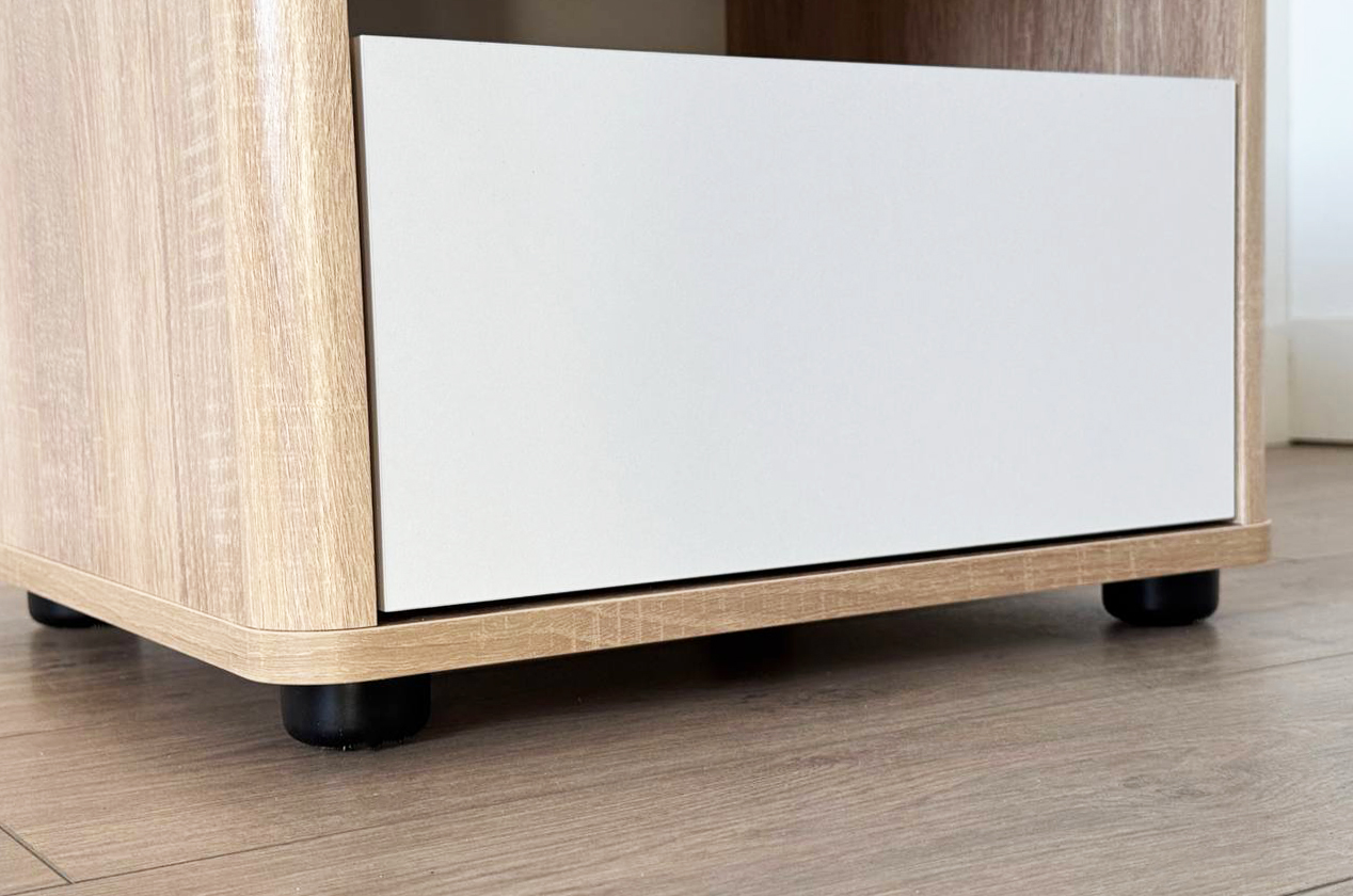 Прикроватная тумба Зара - это отличное дополнение к любой спальне. Ее аккуратный дизайн включает в себя выдвижной ящик и открытую нишу для удобного хранения ваших личных вещей. Особое внимание уделено безопасности: углы тумбы аккуратно скруглены, исключая острые выступы, что делает ее идеальным решением для спальни.