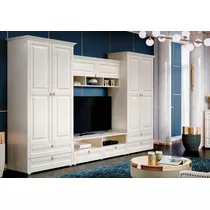 Гостиная Брасс подчеркнет уникальный характер интерьера и создаст удобную систему хранения. Высокие ножки и стеклянные вставки придают вместительным элементам визуальную легкость. Благодаря направляющим скрытого монтажа и петлям с доводчиком мебель удобна в эксплуатации.