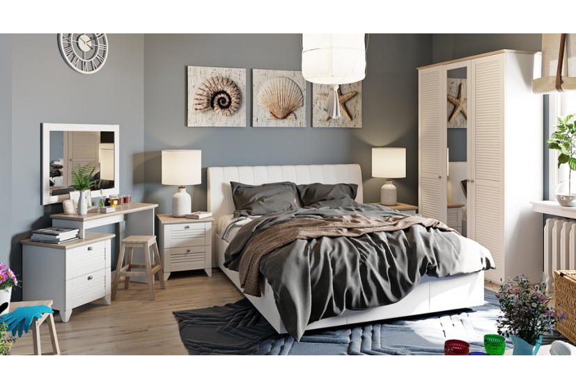 С модулями коллекции «Ривьера» будет идеально сочетаться новая мягкая кровать «Адель» в экокоже, цвет «Белый». Уют и спокойствие — это главные и непременные условия для обустройства спальни. Мягкая спинка с декоративной вертикальной отстрочкой поможет создать комфортную атмосферу в комнате. Изогнутое изголовье позволит удобно устроиться на кровати, чтобы посмотреть телевизор либо почитать книгу. Кровать с подъемным механизмом имеет вместительный короб для хранения вещей, благодаря чему можно сэкономить пространство в комнате.
