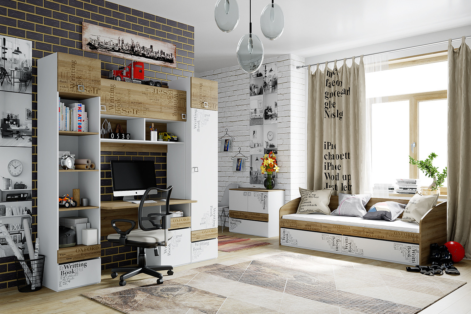 Набор мебели «Оксфорд» станет универсальным решением для формирования детской комнаты. Поскольку все модули выполнены в едином стиле, нет необходимости долго подбирать элементы интерьера, следя за тем, чтобы они сочетались между собой.