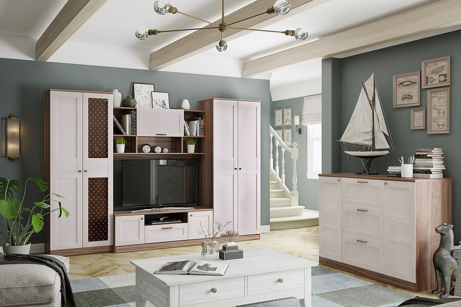 Лестер - модульный набор мебели для Вашей гостиной. Светлые, теплые оттенки мебели визуально расширят пространство комнаты. Цвет корпуса - ясень шимо светлый, цвет фасад - бодега светлая. Стекла выполнены в оттенке бронза. Такое сочетание оттенков привнесет в Вашу гостиную уют и теплую атмосферу.