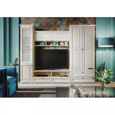 Гостиная Престиж-1 вариант №3 — это идеальное решение для тех, кто ценит красоту, функциональность и элегантный интерьер. Гармоничное цветовое решение, красивая отделка фасадов для гостиной и аристократизм мебели подчеркнут высокий социальный статус и безупречный вкус хозяев. С гостиной «Престиж 1» приятно принимать гостей и проводить время с семьей. Гостиная просто очаровывает своим роскошным видом и необыкновенной отделкой.